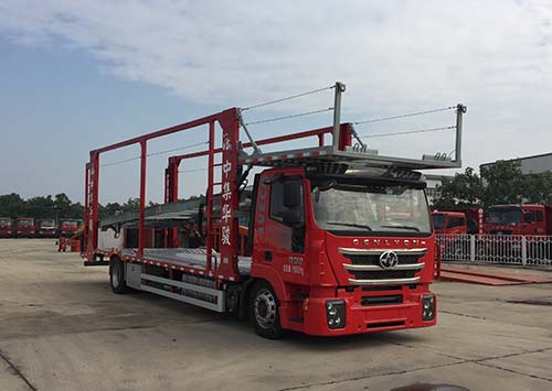 华骏牌上汽红岩单桥国五车辆运输车轿运车外观时尚,设计更加科学,外形尺寸为12000×2550×3900,3750(mm),整车的上户吨位为6170,7070(kg),总质量为18000(kg),上装的上层板和下层板之间的距离可以调整,以适应装载不同的车型;低合金高强度钢的上装材质的使用,让整车的质量更轻,承载力更强;采用进口的液压系统,操作简单,安全性大大提高。