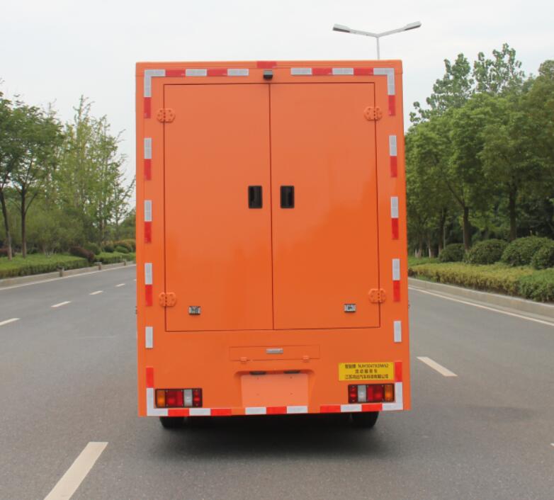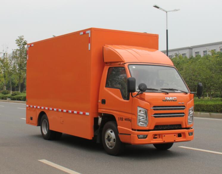 ABS型号:APG3550500A;ABS生产企业:浙江亚太机电股份有限公司;选装限速装置;限速装置限速(km/h):80;发动机净功率值:JX4D30B6H发动机最大净功率:83kw,JX4D30A6H发动机最大净功率:93kw;选装描述:1.随底盘选装前脸、前部灯具、排半驾驶室;2.选装顶置空调,可不选装排气扇;3.车顶无选装时整车高度为2910mm,选装排气扇时整车高度为3000mm,选装顶置空调时整车高度为3155mm;车辆配备顶置空调、5kW车用发电机时整备质量为4365kg,对应总质量4495kg;所用材料材质、连接方式以及后部防护装置的主要尺寸参数(断面尺寸和离地高度):后防护材质为Q235A,裙边结构代替,后防护离地高度为330mm,侧防护材质为Q235A,裙边结构代替,侧防护离地高度为310mm;车厢顶部封闭且不可开启;专用功能及装置:装有流动服务工作台(柜)、工具箱、逆变电源等设备;用于流动办公服务; |