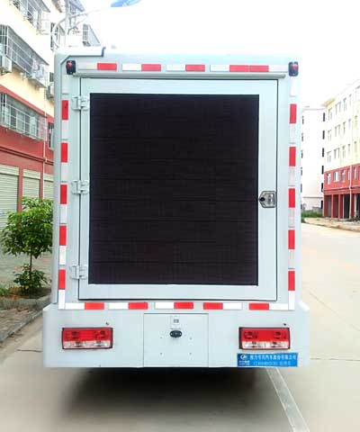该车是用于广告宣传和科普宣传的专用车辆,专用装置为LED屏;两侧均可选装:LED升降或者不带升降屏,滚轴灯箱,条屏,活动舞台;后部可选装:通风口,后开门;后部以及侧面防护为裙板结构,故可豁免;侧面裙板离地高度:420mm.后部裙板离地高度:500mm.ABS系统控制器型号是CM4XL-4S/4M,CM4YK,CM4YL,ABS系统控制器生产企业是广州瑞立科密汽车电子股份有限公司. |