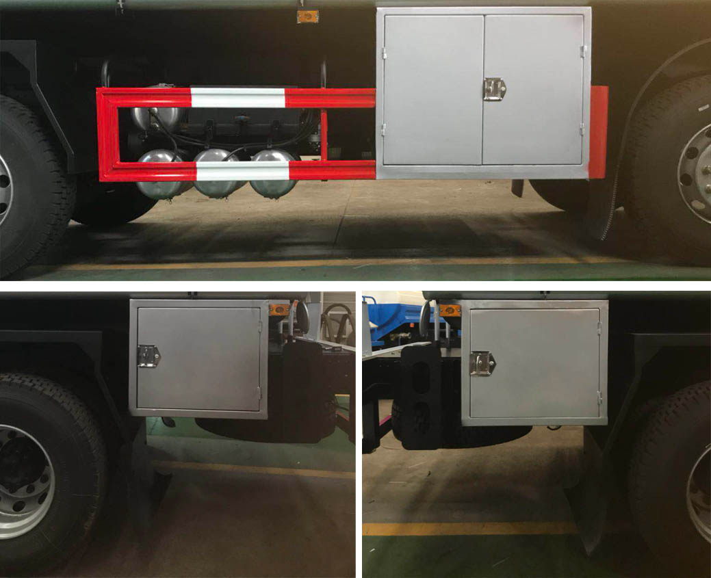 该车主要用途为洗井作业,主要装置为罐体,供液泵.该车型为非危化品运输车,罐体有效容积: 22.2立方米.罐体尺寸(mm):长×宽×高:8200×2460×1620;8200×2400×1530,选装不同罐体形状.侧、后防护材料采用Q235B,与车架焊接连接;后部防护断面尺寸50×120(mm),离地高度490mm.随底盘选装驾驶室.运输介质:洗井液或减水剂,密度分别为:750千克/立方米, 840千克/立方米.ABS厂家及型号:东科克诺尔商用车制动系统(十堰)公司,3631010-C2000.专用装置名称/型号/厂家:汽油机供液泵/WL30XH/嘉陵--本田发动机有限公司.车辆左侧或右侧可选装工具箱.随底盘选装限速装置,限速80km/h. |