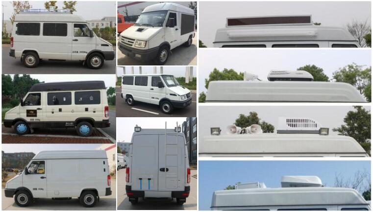1.ABS型号3550B500,厂家浙江亚太机电股份有限公司;选装低顶、全部半推拉窗,选装不带侧拉门,发动机最大净功率88kW;;2.选装换气扇、防水音柱、喇叭、四周照明灯、显示屏、遮阳篷、车顶平台、高杆照明灯、云台摄像机,选装侧面整体显示屏,可不选装顶置空调,选装尾部爬梯、宽后上车踏板,侧、后部选装部分或全部盲窗;3.车顶无选装时整车高度为:低顶2175mm、高顶2575mm,选装换气扇、防水音柱时整车高度为:低顶2275mm、高顶2675mm,选装喇叭时整车高度为:低顶2315mm、高顶2715mm,选装车顶平台、显示屏、四周照明灯时整车高度为:低顶2375mm、高顶2775mm,选装高杆照明灯、顶置空调、车顶平台装喇叭时整车高度为:低顶2425mm、高顶2825mm,选装一种厚型顶置空调高度为:2875mm,选装车顶平台装云台摄像机时整车高度为:低顶2575mm、高顶2975mm,选装高杆照明灯带监控摄像机时整车高度为:低顶2625mm、高顶3025mm,选装宽后上车踏板时整车长度为4910mm;4.车内装有流动服务工作台(柜)、工具箱、办公设备,用于流动办公服务;该车型可选装ETC车载装置。 |