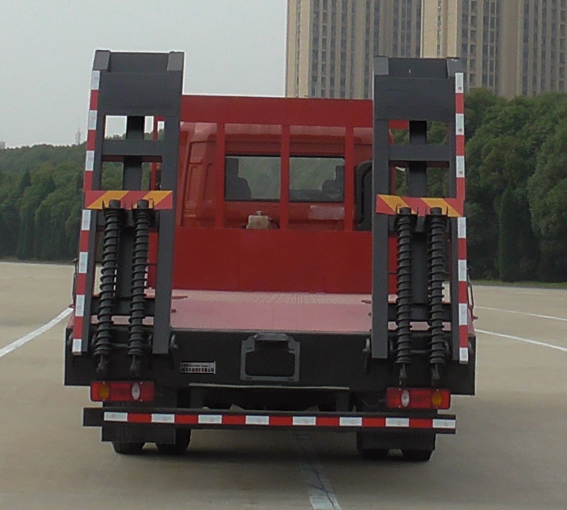 东风牌DFH5160TPBBX2型平板运输车在外观上稳重大气,整车外形尺寸为8600,9000×2550×3000(mm),罐体采用优质碳钢板材一次卷压成型的制造工艺,电脑专控自动成型封头,内外满焊对接,完全做到无缝成型。罐体可分仓,仓内可分室,中间隔板下端有通孔,每仓中间焊有分仓加强波隔板,以减轻车辆行驶时罐体内油料的冲击和提高罐体的刚度。整车还配有油气回收阀,防溢流探杆,流量计,呼吸阀,海底阀灭火器等等安全部件,有效保障运油的安全。