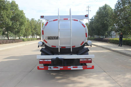 车身四周贴有反光标贴,充分保障行车安全,在罐体上还喷有易燃液体/气体的危险警示标志,警示过往车辆注意避让。