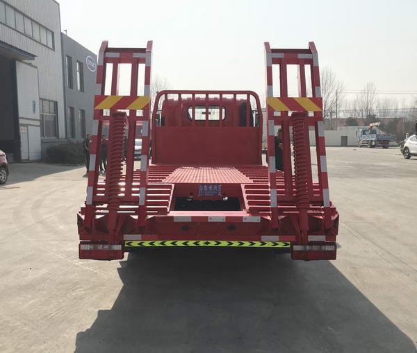 广达威牌LCX5100TPB型平板运输车在外观上稳重大气,整车外形尺寸为7570×2290,2440×2475(mm),罐体采用优质碳钢板材一次卷压成型的制造工艺,电脑专控自动成型封头,内外满焊对接,完全做到无缝成型。罐体可分仓,仓内可分室,中间隔板下端有通孔,每仓中间焊有分仓加强波隔板,以减轻车辆行驶时罐体内油料的冲击和提高罐体的刚度。整车还配有油气回收阀,防溢流探杆,流量计,呼吸阀,海底阀灭火器等等安全部件,有效保障运油的安全。