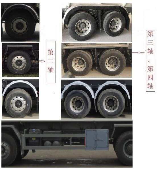 该车型为非危化品运输车,由罐体、泵、供液系统等专用装置组成,主要用于向井场运送液体并配合压井作业;罐体有效容积:25.3立方米,介质:压裂泡沫液;罐体尺寸(长×长轴×短轴)(mm):8800×2500×1720;轴距/前悬/后悬对应关系为:1950+4625+1350/1500/2525,1950+4600+1400/1500/2500;侧、后防护装置材质均为:Q235B,侧、后防护均采用螺栓连接,后防护装置断面尺寸为(mm):80×150,后部防护离地高度:500mm;安装具有卫星定位功能的行驶记录仪,随底盘选装驾驶室,选装挡泥板及箱门样式,选装尾部供液口;选装限速装置,最高车速(km/h)为80或89;ABS系统控制器生产企业/型号为威伯科(上海)管理有限公司/4460046300. |