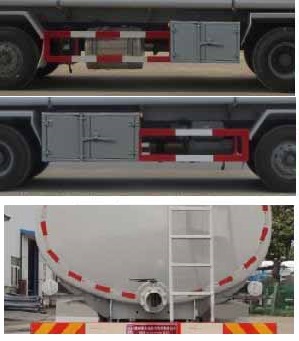 该车型为非危化品运输车,由罐体、泵、供液系统等专用装置组成,主要用于向井场运送液体并配合压井作业;罐体有效容积:25.3立方米,介质:压裂泡沫液;罐体尺寸(长×长轴×短轴)(mm):8800×2500×1720;前悬/后悬/轴距对应关系为(mm):1550/2650/1800+4600+1350,1550/2625/1800+4575+1400;侧、后防护装置材质均为:Q235B,侧、后防护均采用螺栓连接,后防护装置断面尺寸为(mm):80×150,后部防护离地高度:500mm;安装具有卫星定位功能的行驶记录仪,随底盘选装驾驶室,选装挡泥板样式,选装厢门样式,选装尾部带自流口;ABS系统型号为446 004 6300,ABS生产企业为威伯科汽车控制系统(中国)有限公司. |