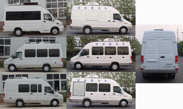 车内设置工作台,设备柜,工具柜,照明供电系统等,主要用于流动宣传,产品展示,维修咨询服务等使用。车顶选装工作平台,防护围栏及场地照明灯,选装顶置空调,升降照明设备,LED显示屏,监视器,喇叭等。选装两侧车窗翼开启式活动门或卷帘门,选装侧开门,选装小发电机组舱门或工具舱门。选装侧、后车窗部分或全部盲窗。选装后部爬梯,倒车雷达等。随原整车选装中顶,电动前开门,侧拉门,胶条玻璃窗,后行李门,后上车踏板,三截式保险杠前围外形及部分灯具等。ABS系统控制器型号:BOSCH ABS8,生产企业:博世汽车部件(苏州)有限公司。该车发动机最大净功率93kW,105kW。 |