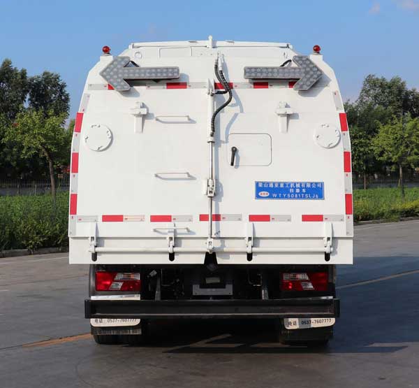 通華牌WTY5081TSLJ6型扫路车整车使用的轮胎规格为7.50R16LT 14PR多种可选,国六的排放标准,发动机多种可选,有以下几种型号可供选择:江铃汽车股份有限公司JX4D306H的发动机,动力十足,质量有保障。另外增强型高压共轨燃油系统确保发动机在运行中全程保持最佳性能和燃油经济性,排放更低。