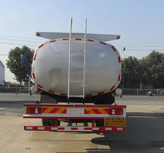 罐体有效容积:16.3立方米;罐体外形尺寸(长×宽×高)(mm):5700×2200×1600;该车用于向井场运送液体的特种结构专用作业汽车,专用装置:罐体、自吸式离心泵;侧后防护材料均为Q235,连接方式:左右侧面防护与车架大梁采用螺栓连接,后下部防护与车架大梁采用焊接连接,后部防护断面尺寸(mm):130×80,后部防护离地高度(mm):450;ABS系统型号为XH-KQ4S4M-E01,生产企业为广州市西合汽车电子装备有限公司;选装尾部带自流口. |