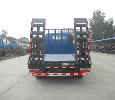 华通牌HCQ5046TPBHF5型平板运输车在外观上稳重大气,整车外形尺寸为5995×2300,2400,2500×2550,2700,2950(mm),罐体采用优质碳钢板材一次卷压成型的制造工艺,电脑专控自动成型封头,内外满焊对接,完全做到无缝成型。罐体可分仓,仓内可分室,中间隔板下端有通孔,每仓中间焊有分仓加强波隔板,以减轻车辆行驶时罐体内油料的冲击和提高罐体的刚度。整车还配有油气回收阀,防溢流探杆,流量计,呼吸阀,海底阀灭火器等等安全部件,有效保障运油的安全。