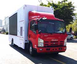 迪马牌DMT5090XXCV型宣传车整车的外形尺寸为7960×2310×3600(mm),车身颜色搭配LED显示屏的颜色再加上广告的炫彩,非常吸引人的眼球。箱体左右后三面都可选装LED显示屏,屏幕的清晰度随您挑选。该显示屏显示的色彩与播放源的色彩保持高度一致,显示出来的图像真实感极强。