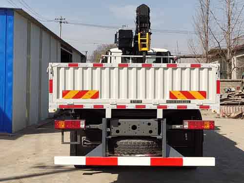 随车起重机,型号/质量(Kg)/最大起升载荷(Kg)为:ST260/4080/10000。随底盘选装限速装置时,最高车速为89km/h。侧面及后下部防护装置材料均为Q235,均为螺栓连接,后下部防护装置断面尺寸为120mm×100mm,离地高度为450mm;发动机油耗值均为42.5L/100km;ABS型号为4460046300,生产厂家为威伯科汽车控制系统(中国)有限公司;安装带卫星定位功能的行驶记录仪;选装货箱栏板结构,可不选装高空座椅操作形式,可不选装液压油箱在随车起重机转台上,选装引起的质量变化在3%以内。 |