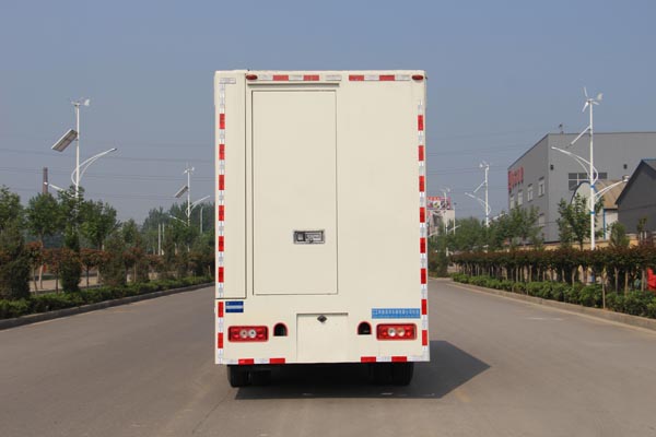 两侧均可选装LED屏;侧面选装广告卷轴装置;后部选装LED显示屏、后部选装封闭式形式、开后门型式;单侧可选装封闭式结构;LED屏可选装盖板形式;额定载质量与驾驶室准乘人数的对应关系:165kg/2人、100kg/3人;ABS控制器的型号,ABS-E,APG3550500A,生产企业为:威伯科汽车控制系统(中国)有限公司,浙江亚太机电股份有限公司.ABS控制器的型号,YF8,生产企业为:武汉元丰汽车电控系统有限公司;ABS系统型号:ABS-VI.E;生产企业:广州瑞立科密汽车电子股份有限公司.厢体侧部防护和后部防护装置均为裙板式结构,防护装置均采用Q235A普通碳素钢板(厚度1.5mm)折弯组合焊接而成,防护装置均采用焊接方式与车体连接,后防护装置离地高度为420mm。该车是进行宣传展示用的专用车辆。 |