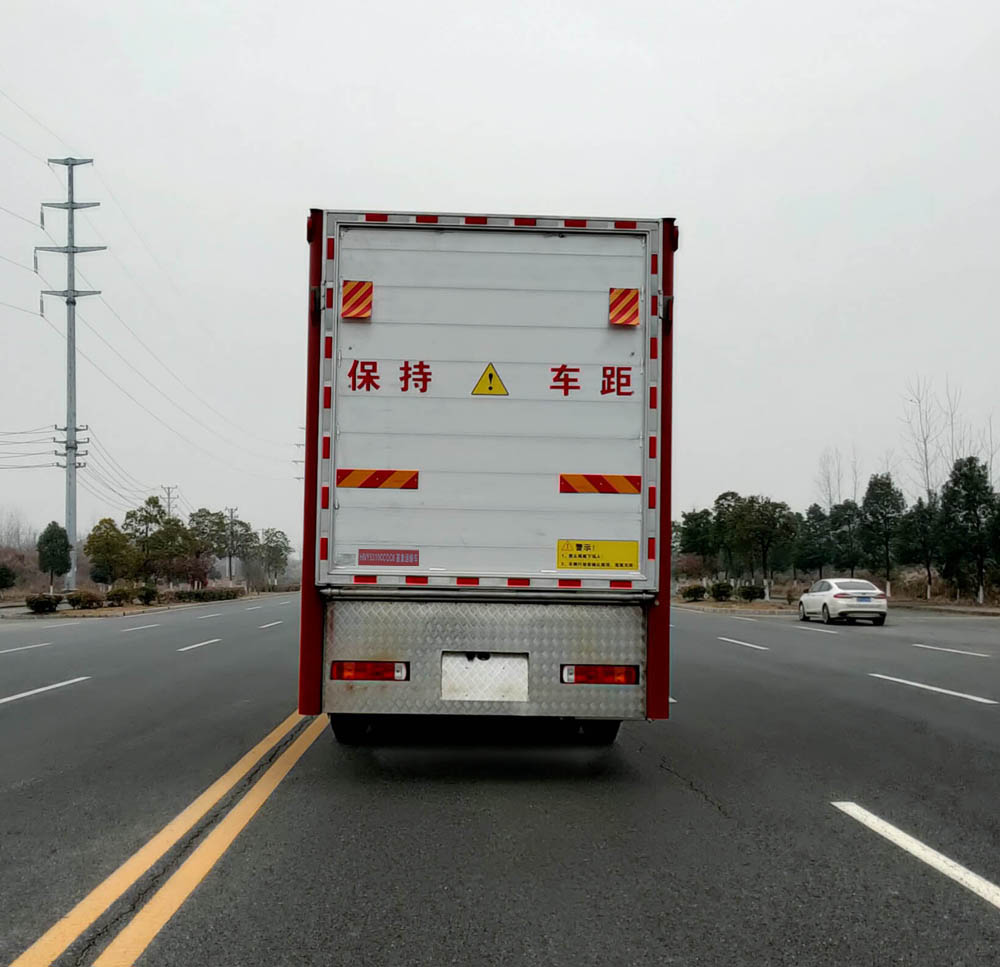 选装平顶驾驶室,选装新的前部灯具,选装两层、三层、四层仓栅结构,选装箱体前部带单开门结构和封板结构;箱体两侧开窗,中间有隔栏,货箱底板到仓栅顶部的高度为2550mm;车辆后部装有液压尾板,液压尾板收起状态的水平长度为280mm,液压尾板重量550kg;侧防护材质:矩形铝合金型材6061-T5,连接方式螺栓连接;后防护与车辆结构为一体,材料为Q235,焊接连接,离地高度为:500(mm);ABS生产厂家/型号:浙江万安科技股份有限公司/VIE ABS-II;安装符合规定的具有卫星定位功能的行驶记录; 发动机型号/油耗值(L/100km)对应关系为:CA6DM2-46E6/37.21,CA6DM2-42E6/37.21,CA6DL6-38E6/37.21;该车专用装置为箱体和液压尾板,主要用于畜禽运输;该车型可选装ETC车载装置. |