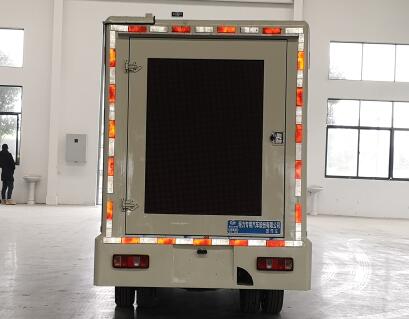 程力威牌CLW5023XXCJK6型宣传车整车的外形尺寸为5300×1800×2680(mm),车身颜色搭配LED显示屏的颜色再加上广告的炫彩,非常吸引人的眼球。箱体左右后三面都可选装LED显示屏,屏幕的清晰度随您挑选。该显示屏显示的色彩与播放源的色彩保持高度一致,显示出来的图像真实感极强。