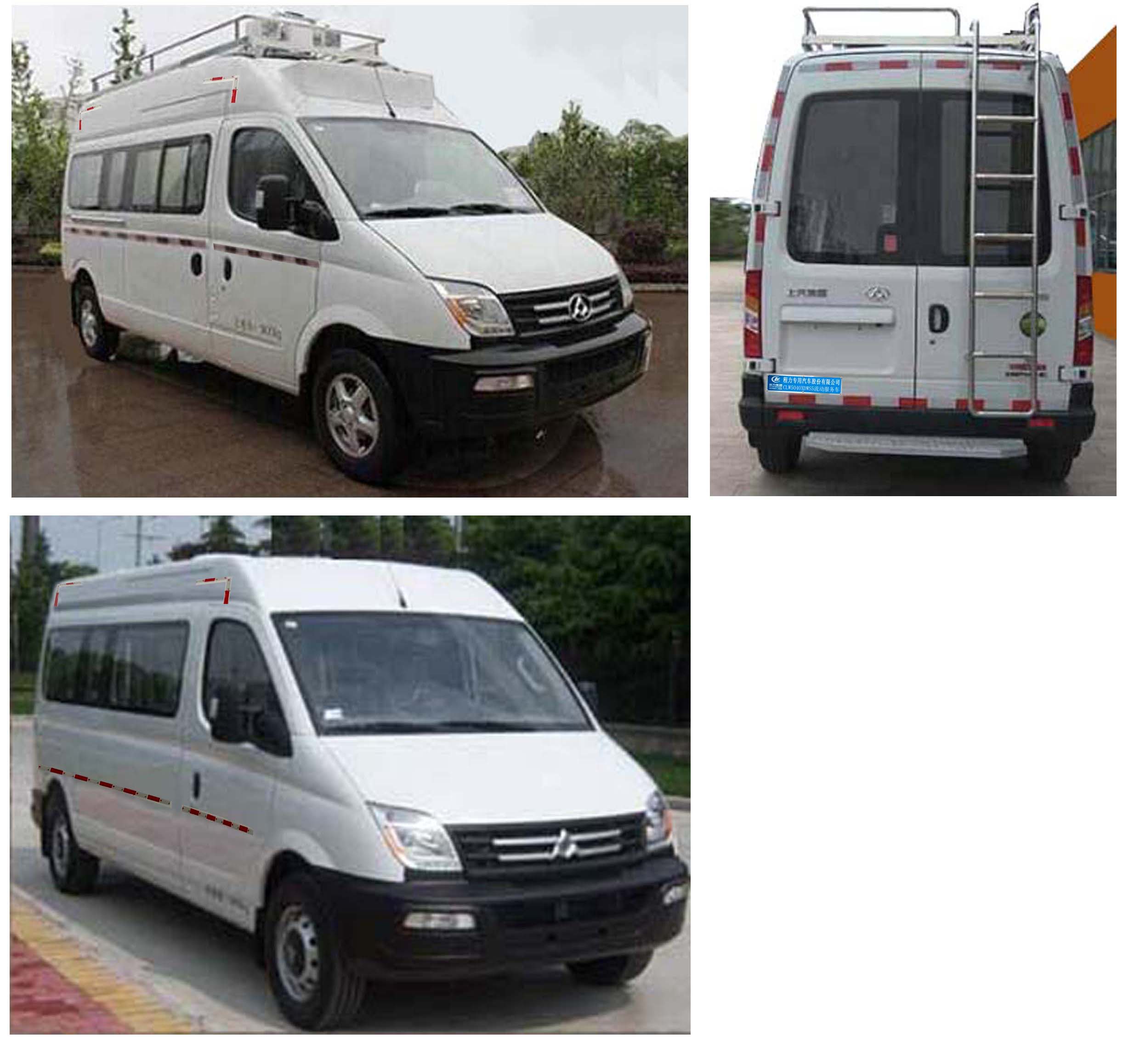该车配备流动服务专用设备,装备工作台,工具箱等流动服务专用设备;随底盘选装中顶,车顶不选装设备时整车高度(mm):2552高顶),2345(中顶);选装换气扇,喇叭整车高为(mm):2680(高顶),2470(中顶);选装车顶平台,倒伏式照明灯,整车高为(mm):2750(高顶),2552(中顶);选装顶置空调整车高为(mm):2810(高顶),2600(中顶),选装顶置空调,云台摄像机整车高为(mm):2900(高顶),2750(中顶); 该选装后踏步,后爬梯时整车长为(mm):5910;随底盘选装一体式后踏步时整车长度(mm):5785;ABS生产企业:博世汽车部件(苏州)有限公司,博世汽车部件(苏州)有限公司,ABS型号:ABS 9.0,ESP9,选装右侧遮阳棚宽(mm):2070,选装内部变化。 |