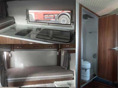 标识;ABS系统控制器型号:0 265 242 ***,ABS系统控制器生产企业:BOSCH.车身构件代替侧防护,离地高度480mm,后防护装置材料:Q235,截面尺寸:100×100mm,与车辆连接方式:螺栓连接,后防护离地高度:460mm;配备厨具,卧具,卫生设施等旅居生活设施和娱乐设施等专用装置. |