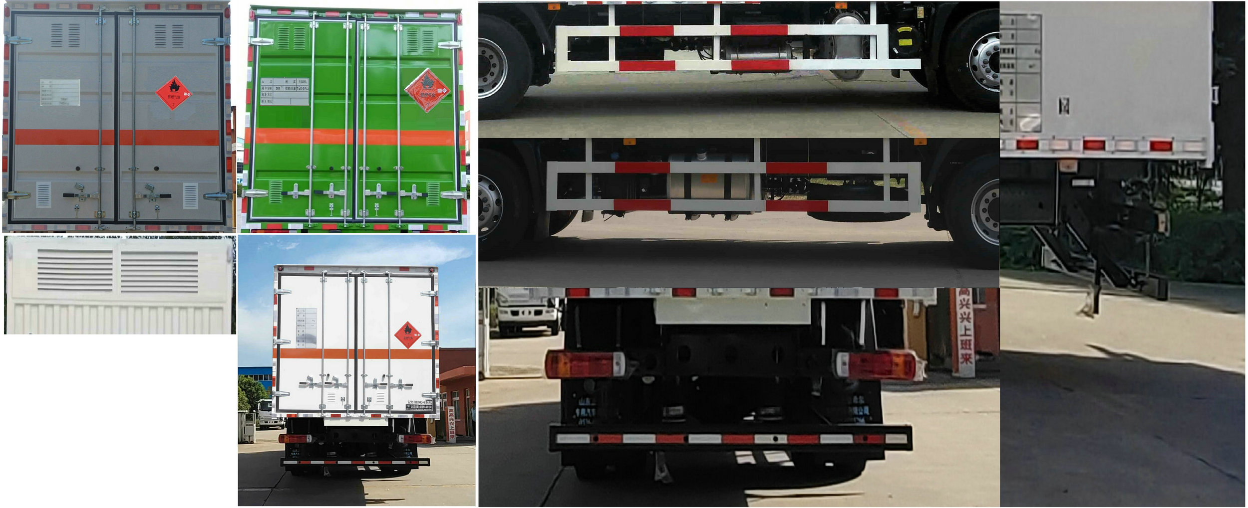 ABS型号:ABS-VI.E,ABS-E;ABS生产企业:广州瑞立科密汽车电子股份有限公司,威伯科汽车控制系统(中国)有限公司,EBS 5/克诺尔制动系统(大连)有限公司;安装有限速装置;限速装置限速(km/h):80;安装有具有卫星定位功能的行驶记录仪;发动机净功率值:发动机F4.5NS6B220,YCS06245-60A对应的最大净功率为159kw,176kw;选装描述:厢体选装无侧门;选装高顶驾驶室;选装导流罩;厢体可选装不燃气体标志牌;选装不同形式的瓦楞工艺厢体;选装多种形式的侧开门;选装不同形式的侧门拉杆;选装不同形式的后门拉杆;厢板前后选装百叶窗;该车型可选装ETC车载装置;选装无液压尾板时,后防护装置材料为Q235,与车辆连接方式为螺栓连接,后防护断面120×60mm,离地高445mm;发动机/油耗值(L/100km)对应关系为:F4.5NS6B220(26.28),YCS06245-60A(24.58);侧后防护情况:侧防护装置材料:Q235,与车辆连接方式为螺栓连接;后防护装置材料为Q235,与车辆连接方式为螺栓连接,后防护断面直径120mm,离地高495mm;尾板、上下坡道(或类似装置)收起状态的水平长度(mm):295mm;车厢顶部封闭且不可开启;运输独立容器(瓶)包装的货物;危险货物类项号:2.1;2.2;其他说明:尾板总质量450KG;该车为危险货物运输车;在车体后部设置安全标示;运输具有独立容器包装的易燃气体;车身侧面及后部粘贴橙色反光标识和易燃气体菱形标示牌; 仅用底盘限速装置及前盘制动;转向轮安装爆胎应急防护装置;仅用子午线轮胎;仅选用底盘的前置排气管结构;安装辅助制动装置;安装后悬架为空气悬架; |
