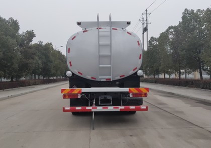 车身四周贴有反光标贴,充分保障行车安全,在罐体上还喷有易燃液体/气体的危险警示标志,警示过往车辆注意避让。