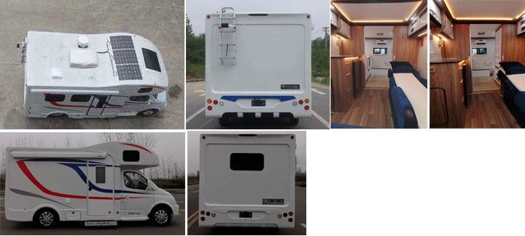 该车装配睡具,炊具等设备,用于旅行宿营;选装高配置时,整备质量3828kg,对应额定载客2-4人;选装标准配置时,整备质量3692kg,对应额定载客2-6人;遮阳棚为选装件,车身两侧或单侧均可选装遮阳棚;选装后部爬梯;车身顶部可全部或部分选装天窗,顶置空调,卫星天线,太阳能电池;选装整车外观及后部结构;侧面防护及后下部防护装置为整体式结构,后下部防护装置离地高度:400mm;ABS生产企业:博世汽车部件(苏州)有限公司,博世汽车部件(苏州)有限公司,ABS型号:ABS 9,ESP9. |