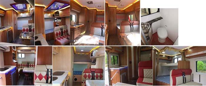 江特牌上汽大通国六C型旅居车在外观时尚霸气造型圆润流畅,可有效降低风阻系数,整车外形尺寸为5998×2380,2470,2550×2920,2995(mm),房厢采用玻璃钢复合车身结构及阻燃保温材料,做工精细;房厢内部配置齐全,床,洗手间,厨房,冰箱,,储物仓,暖气设备,灭火器等等。