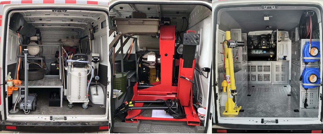 1.随原车选装尾部可拆卸后踏板,前保险杠,前格栅,前雾灯,侧面防擦条,铝合金轮毂,车轮装饰罩,普通钢轮圈,侧移门踏步;2.另可选装左/右侧上掀门,LED展示屏,喇叭,其他车身喷涂等,选装后踏板时车长为5250mm;对应后悬及离去角分别为1235mm和24°;选装LED展示屏装置时车高为2480mm,选装顶置喇叭时车高为2590mm,选装低顶车身时车高为2150mm;3.车内配备汽车服务设施:扒胎机、柴油发电机、气泵和机油加注枪等专用设备;4.驾驶室与工作区用隔板隔开,车厢顶部封闭不可开启;5.ABS型号/生产厂家:MK70MXT/大陆泰密克汽车系统(上海)有限公司;6.WP2.3Q110E50发动机净功率:77kW.ABS厂家及型号:襄阳东风隆诚机械有限责任公司/ABS/ASR-12V-4S/4M. |