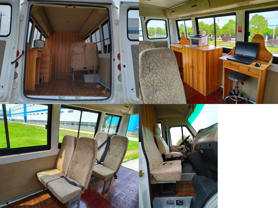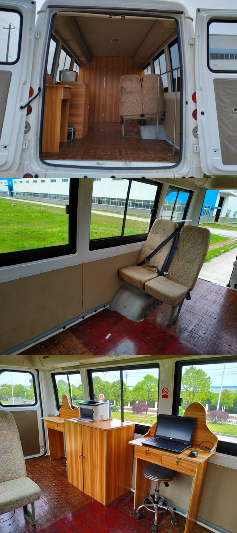 该车配备办公区隔断,储物柜,工具箱,办公电脑,打印机流动服务专用设备,方便工作人员在车内办公使用;选装外顶置空调,遮阳棚,喇叭;选装不同颜色大灯,前雾灯,车轮装饰罩;选装单侧遮阳棚时车宽2116mm,选装双侧遮阳棚时车宽2134mm;选装喇叭时车高2900mm,选装外顶置空调时车高2920mm;ABS生产企业:广州瑞立科密汽车电子股份有限公司;ABS型号:ABS型号:CM4XL-4S/4M,CM4YL;YCY24140-60A 发动机最大净功率为99kW. |