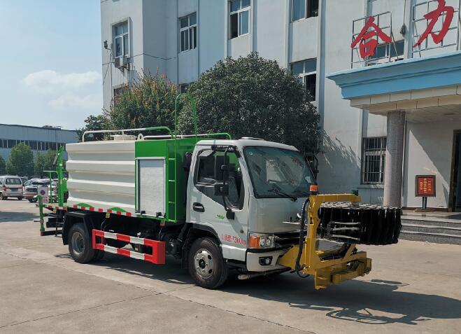 整车外形尺寸为7350×1950×2850(mm),容积大,额定载质量达到3260(Kg),有效保证运水量,罐体前面左侧安装了清洗刷、清洗机、洗管装置等配置,另外,还有一套手动的高压喷抢,配合作业,胜任各种工况。