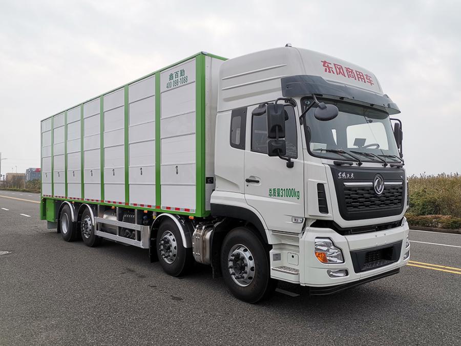 备注 | ABS型号:ABS 8;ABS生产企业:东科克诺尔商用车制动系统(十堰)有限公司;安装有具有卫星定位功能的行驶记录仪;发动机净功率值:DDi75E350-60净功率为252kw;选装描述:车厢顶部可选装升降顶板或通道翻门(用于装卸畜禽及清洗厢体时使用),选装厢体前右侧开门工作间结构,选装加热器及制冷空调,选装厢体风机安装位置,选装厢体前上部进风窗及左后部工具箱,选装三层厢体,整备质量13450kg,额载17355kg,选装二层厢体,整备质量12950kg,额载17855kg,选装仅高度不同的驾驶室,侧窗选装树脂装饰板,前雾灯和前面罩装饰胶条为选装件;发动机/油耗值(L/100km)对应关系为:DDi75E350-60/36.8;车厢底板到顶部高度(mm):2555;所用材料材质、连接方式以及后部防护装置的主要尺寸参数(断面尺寸和离地高度):侧防护材质为铝合金5A02(支架)/铝合金6063(横杆),连接方式为螺栓连接;厢体后框架代替后防护,断面尺寸(高×宽mm):120×100,材料为Q235,离地高度470mm;尾板、上下坡道(或类似装置)收起状态的水平长度(mm):165;专用功能及装置:厢体为多层结构,中间有隔栏,侧面有滑窗及风扇,后部为垂直升降式尾板;其他说明:尾板质量为550kg,该车型可选装ETC车载装置,长11975mm为最后端上部工作灯架,厢内无工作间内长(mm)9280,厢内带大小工作间内长(mm):8550,8000. |