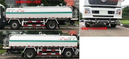 ABS型号:3631010-C2000;ABS生产企业:东科克诺尔商用车制动系统(十堰)有限公司;选装描述:可选装罐体顶部左右侧喷,前下部右对冲喷嘴等任意一种或多种配置.随底盘选装驾驶室前面罩.选装侧窗玻璃.驾驶室顶部中间三个装饰灯为选装件;前雾灯为选装件;驾驶室前脸扰流罩为选装件;所用材料材质、连接方式以及后部防护装置的主要尺寸参数(断面尺寸和离地高度):侧防护装置和后防护装置材料Q235,连接方式:螺栓连接,后防护装置尺寸(mm):120×60×6;离地高(mm):460;罐体有效容积(立方米)、罐体外形尺寸(mm):罐体有效容积:15.75立方米,罐体外形尺寸(长×宽×高)(mm):7000×2300×1300;专用功能及装置:该车装有罐体和水路系统,用于路面清洗作业; |