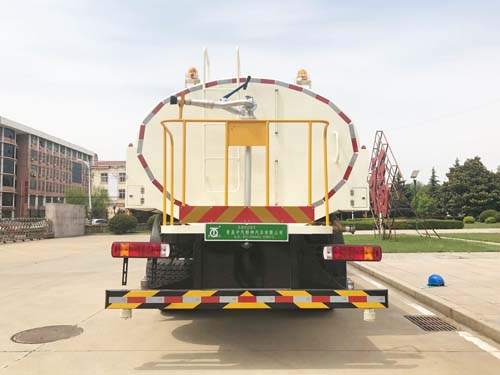 福田瑞沃国六11方清洗车车身喷漆采用白蓝相配,寓意蓝天白云,保卫环境整洁的意思;整车外形尺寸为8535,8855×2500×3020(mm),罐体容量大,车辆额定载质量达到10525,10590(Kg),保证了运输的水容量,改装配置上,加装有60米的耐高压钢丝清洗高压管,方便近距离作业;配上金属喷漆,提高车辆档次,确保罐体无掉漆,延长使用寿命,同时整车造型美观,比例协调。
