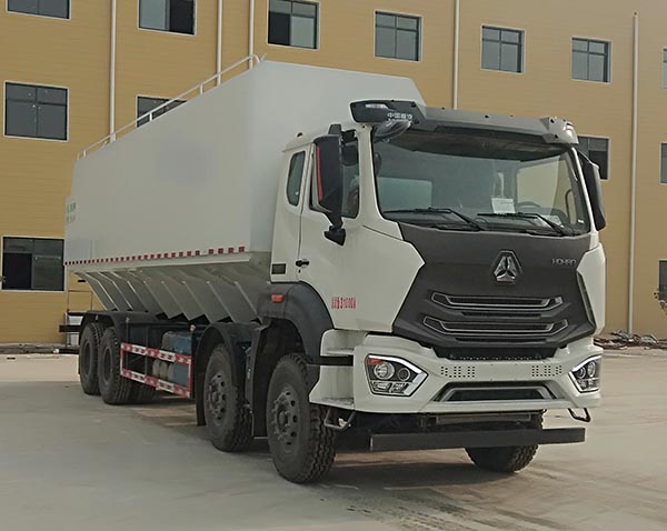 大力牌重汽豪瀚前四后八31.6方散装饲料运输车有着运输量大,上料速度快,卸料残余率低的特点,所以在饲料行业和养殖行业也占据着举足轻重的地位。
