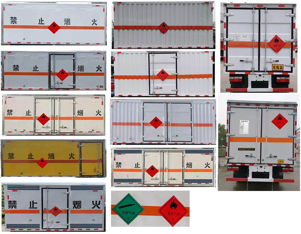 备注 | 该车为危险品运输车.该车顶部封闭,不可开启.随底盘选装前面罩,前保险杠,前组合灯具.选装侧开门型式及位置,选装不开侧门,厢体选装开百叶窗.类项号2.1, 2.2.选挂2.1类易燃气体警示牌或2.2类非易燃无毒气体警示牌.液压尾板收起水平长度:280mm,尾板质量为350kg,后部安装液压尾板时侧、后防护材料为Q235,侧防护焊接连接,后防护螺栓加焊接连接,后防护截面高100mm,截面宽50mm,下边缘离地高460mm;选装后部不带尾板时后防护材料:Q235,连接方式为焊接,后防护截面高100mm,截面宽50mm,下边缘离地高460mm.仅采用排气管前置,子午胎,限速装置,辅助制动装置和前轮盘式制动器的底盘;限速80km/h.安装具有卫星定位功能的行驶记录仪;ABS厂家及型号:襄阳东风隆诚机械有限责任公司/ABS/ASR-24V-4S/4M.CY4BK461/CY4BK161/YCY24140-60/D20TCIF1/D25TCIF1/CA4DB1-11E6/CA4DB1-13E6/Q23-115E60/Q28-130E60发动机油耗值均为11.4(L/100km).转向轴已安装防爆胎装置.选装ETC车载装置.各发动机净功率(kW)值如下:CY4BK461:92,CY4BK161:102,YCY24140-60:99,D20TCIF1:88,D25TCIF1:105,CA4DB1-11E6:79,CA4DB1-13E6:93,Q23-115E60:82,Q28-130E60:93,CY4BK361:97. |