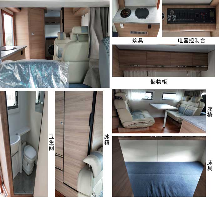 1,ABS型号:CM4XL-4S/4M;ABS生产企业:广州瑞立科密汽车电子股份有限公司;2,发动机净功率值:发动机型号为4HK1-TCG61,净功率为138kW,VIN为LWLDACNG×××××××××,仅装配气压制动系统;3,选装描述:该车随底盘选装不同的标牌,后视镜等;该车型可选装ETC车载装置;该车允许选装不同侧围布置结构;允许选装车顶太阳能板和天线;允许随底盘选装轮胎;4,侧后防护情况:侧防护为裙边结构,离地高度:右410mm,左425mm,后防护支架以螺栓连接在车架纵梁尾端,后防护断面尺寸:139×50(mm),离地高度:500mm;5,车厢顶部封闭且不可开启;6,专用功能及装置:配备桌椅,厨具,睡具,卫生设施等旅居生活设施. |