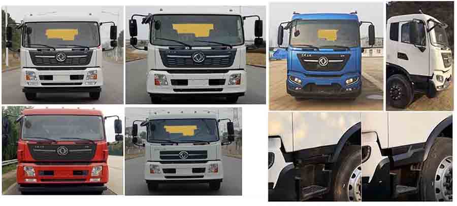 底盘配置上,东风商用车有限公司生产的DFH1180EX8载货汽车底盘,多款轴距可选:3800,3950,4200,4500,4700,5000,5300,5800,5600(mm),根据底盘可选装10.00R20 18PR,275/80R22.5 18PR轮胎,在车身四周都贴有众多反光标贴,保证行车及作业中车身安全。