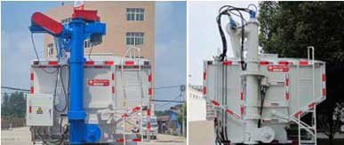 炎帝牌SZD5180ZSLD5V型散装饲料运输车外型特点突出,底盘配置优越,整车的在上料,卸料过程中使用到的三个蛟龙都有自己的独到之处,三个蛟龙在工作过程中,活动蛟龙最大回转角度为180度,最大仰角为60度,同时水平输送最大距离为7.2m,垂直输送最大距离为8.2m,卸料操作的残留率为0.01.