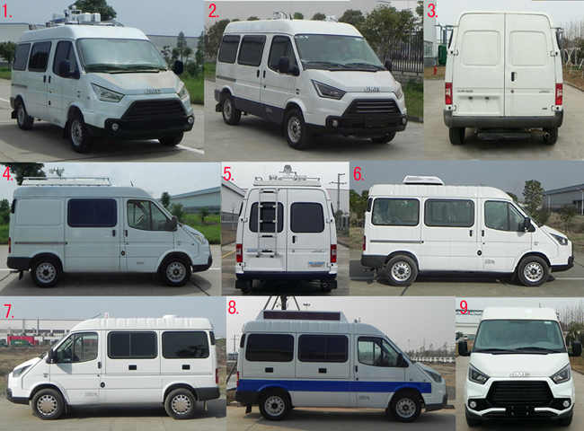 随底盘选装前脸,轮罩盖,尾门上车踏板,外后视镜和侧转向灯。车顶可单独或部分选装换气扇、场地照明灯、宣传喇叭、空调、LED显示屏、车顶设备平台及升降照明灯,车身可单侧或两侧选装上掀窗,后侧窗及尾门窗选装盲窗。选装遮阳蓬。选装尾门踏板时车长4900mm,对应后悬1083mm。不装车顶设备时高2180mm,选装车顶换气扇高2325mm,选装车顶场地照明灯、宣传喇叭高2285mm,选装车顶空调或LED显示屏高2420mm,选装车顶设备平台高2380mm,选装升降照明灯高2510mm(无摄像头),2680mm(有摄像头)。配备主要专用装置:1,工作柜、绕线盘、功放等,对应整备质量2210kg;2,设备柜、逆变器、绕线盘、无线路由器、功放机等,对应整备质量2370kg;3,设备柜(架)、绕线盘、逆变器、无线路由器、外接供电系统等,对应整备质量2540kg。该车型主要用于城乡现场服务、宣传及产品展示等。ABS系统控制器型号:APG3550500G;ABS系统控制器生产企业:浙江亚太机电股份有限公司。随底盘选装发动机。JX493ZLQ6发动机最大净功率83kW,JX493ZLQ6B发动机最大净功率88kW。 |
