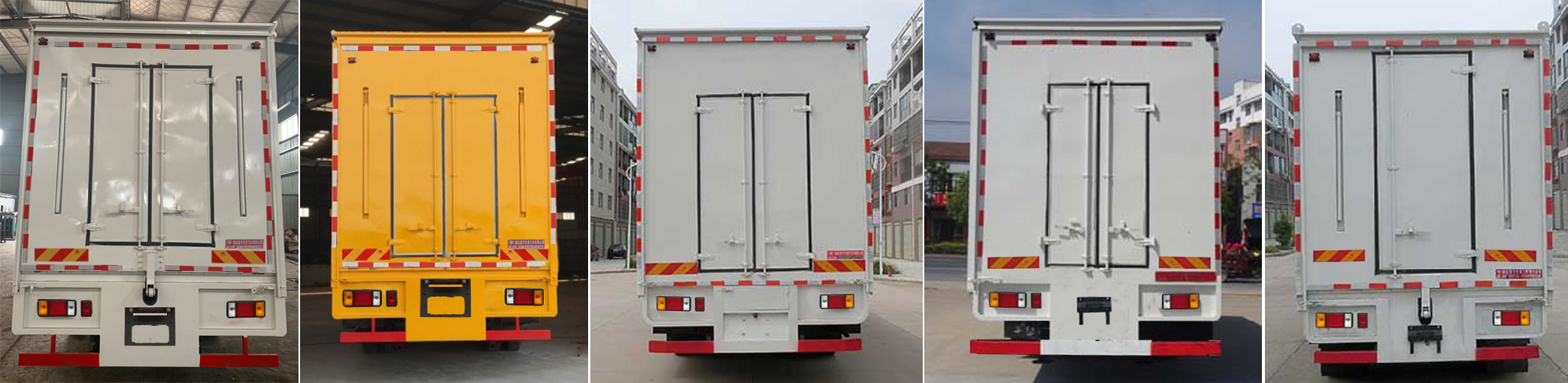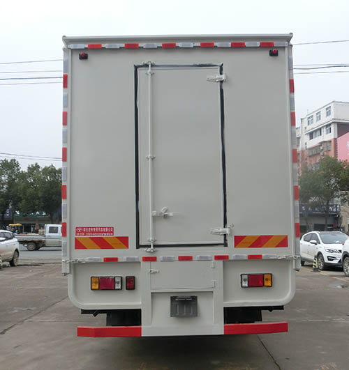 选装前格栅及前部LOGO,选装后门样式。车厢顶棚封闭,并采用衍架结构,可升降,车厢两侧板可展开,与顶棚形成整车舞台顶棚;活动舞台板可折叠于车厢内,通过展开装置展后与固定舞台台面形成整车舞台台面;底盘大梁部分设有支撑装置。该车作为流动演出的、可展开成为舞台。侧防护采用冷弯型钢/Q235-B,螺栓连接,后防护采用冷弯型钢/Q235-B,焊接连接,截面尺寸(宽×高)(mm):50×120,离地高500mm;ABS控制方式为4S/4M,ABS型号为CM4XL-4S/4M,生产厂家为广州瑞立科密汽车电子股份有限公司。 |