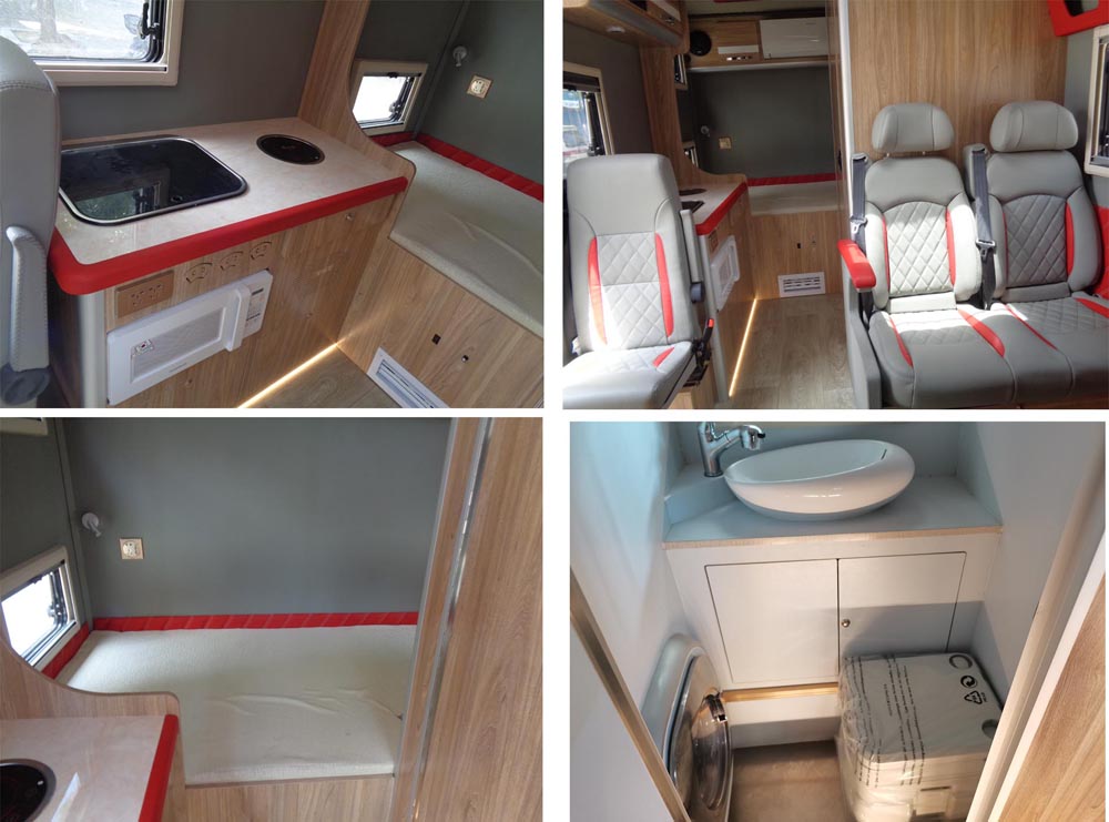 该车设有睡具,炊具,空调,卫生设施等设施;安装顶置空调整车高(mm):2850,安装换气扇整车高(mm):2640;后部安装爬梯整车高(mm):2670;不选装后部爬梯整车长(mm):5885,ABS生产企业:博世汽车部件(苏州)有限公司,ABS型号:EV5051,扩展后部样式以及内部布局,选 装侧面二扇窗,选装后部样式。 |