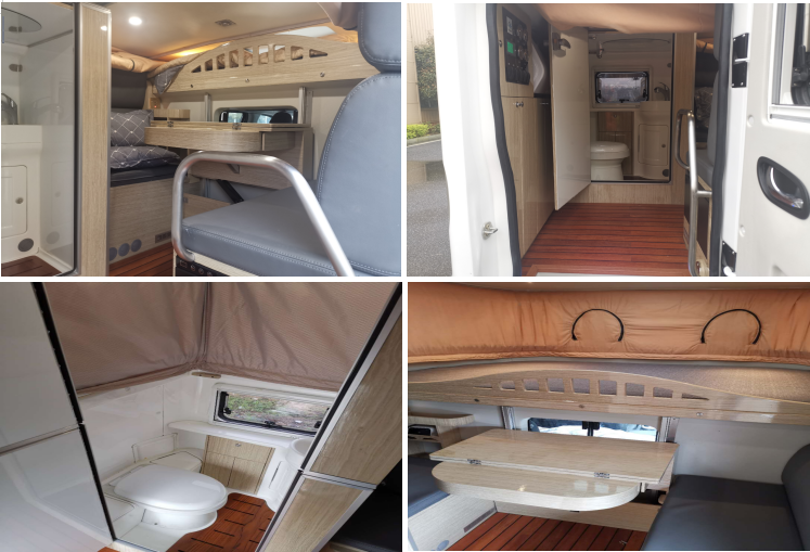 霞客乐牌东风日产国六C型旅居车在外观时尚霸气造型圆润流畅,可有效降低风阻系数,整车外形尺寸为5480×2050×2180(mm),房厢采用玻璃钢复合车身结构及阻燃保温材料,做工精细;房厢内部配置齐全,床,洗手间,厨房,冰箱,,储物仓,暖气设备,灭火器等等。