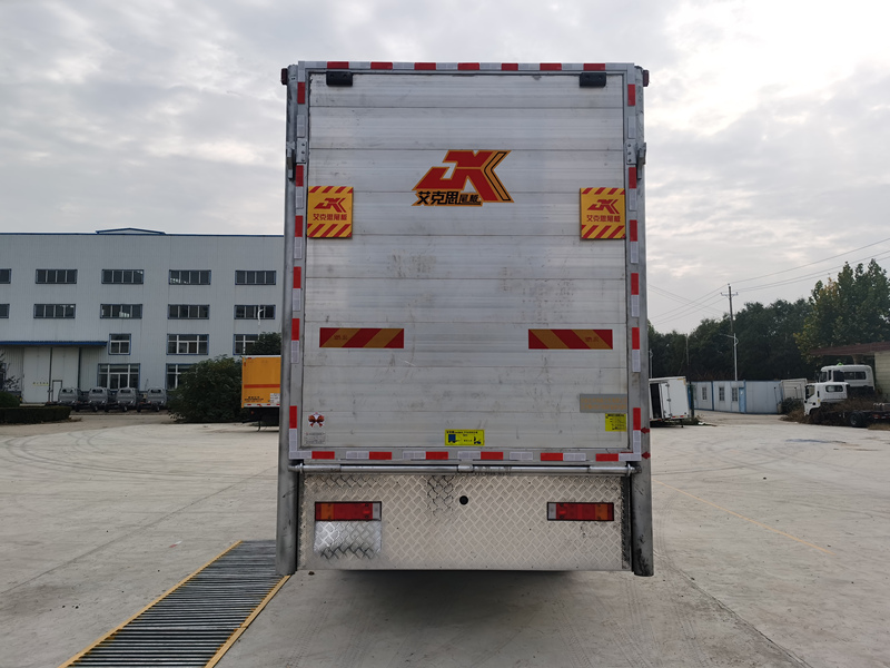 1;该车专用装置为箱体及举升尾板,主要用于畜禽运输;2;随底盘选装驾驶室,选装箱体外观;3;侧防护材质:矩形铝合金型材6061-T6,连接方式为螺栓连接;厢体后框架代替后防护,下横梁断面尺寸(高×宽mm):120×53,连接方式为焊接连接,材料Q235A,离地高度500mm;4;货箱底板到仓栅顶部的高度为2600mm;5;车辆后部安装举升尾板,尾板收起状态的水平长度为280mm,尾板重量为550kg;6;安装具有卫星定位装置的行驶记录仪;7;该车型可选装ETC车载装置;8;发动机型号/油耗申报值(L/100km)对应关系为:DDi11E385-60/37.0,DDi11E430-60/37.0,DDi11E465-60/37.0;9;ABS型号/生产厂家:ABS 8/东科克诺尔商用车制动系统(十堰)有限公司,ABS-E 4S/4M/威伯科汽车控制系统(中国)有限公司; |