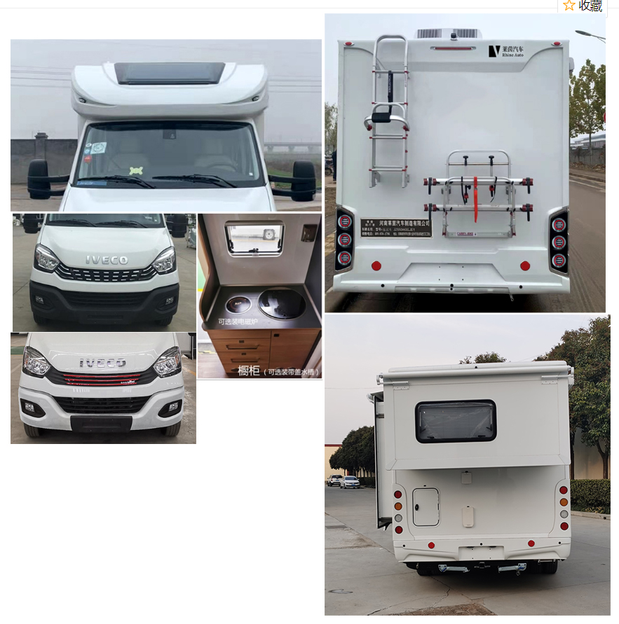 莱茵旅行者牌依维柯国六C型旅居车在外观时尚霸气造型圆润流畅,可有效降低风阻系数,整车外形尺寸为5980×2240,2340,2440×2855,3090,3280(mm),房厢采用玻璃钢复合车身结构及阻燃保温材料,做工精细;房厢内部配置齐全,床,洗手间,厨房,冰箱,,储物仓,暖气设备,灭火器等等。