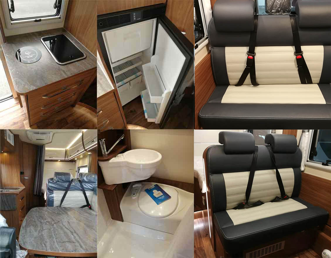 ABS型号:BOSCH ABS9、BOSCH ESP9;ABS生产企业:BOSCH公司;发动机净功率值:F1AE8481D发动机最大净功率93KW;F1CE8481K发动机最大净功率123kW;选装描述:选装高配时对应整备质量为3650kg,选装中配时对应整备质量为3520kg,选装简配时对应整备质量为3400kg;选装不同形式空调时整车高度为:2980mm,2850mm;车身两侧可选装不同型式侧窗和侧舱门的样式及位置,选装侧排风扇,车身后部可选装不同型式后窗、遮阳棚,车辆顶部可选装太阳能电池板;该车可选装后爬梯、后自行车架、后备胎支架、乘客门;该车可选装正副司机门无上车踏步;车辆后部可选装仅在未行驶状态下使用的拓展舱;该车以车体结构作为侧、后防护,侧防护下边缘离地高度450mm,后防护下边缘离地高度500mm;专用功能及装置:该车配备冰箱、卧具、厨具、卫生设施等旅居生活设施,用于旅行宿营;其他说明:该车可选装ETC车载装置;该车仅选用底盘1750mm后轮距;选装前中网镀烙格栅,选装轮毂,选装后部灯具 |