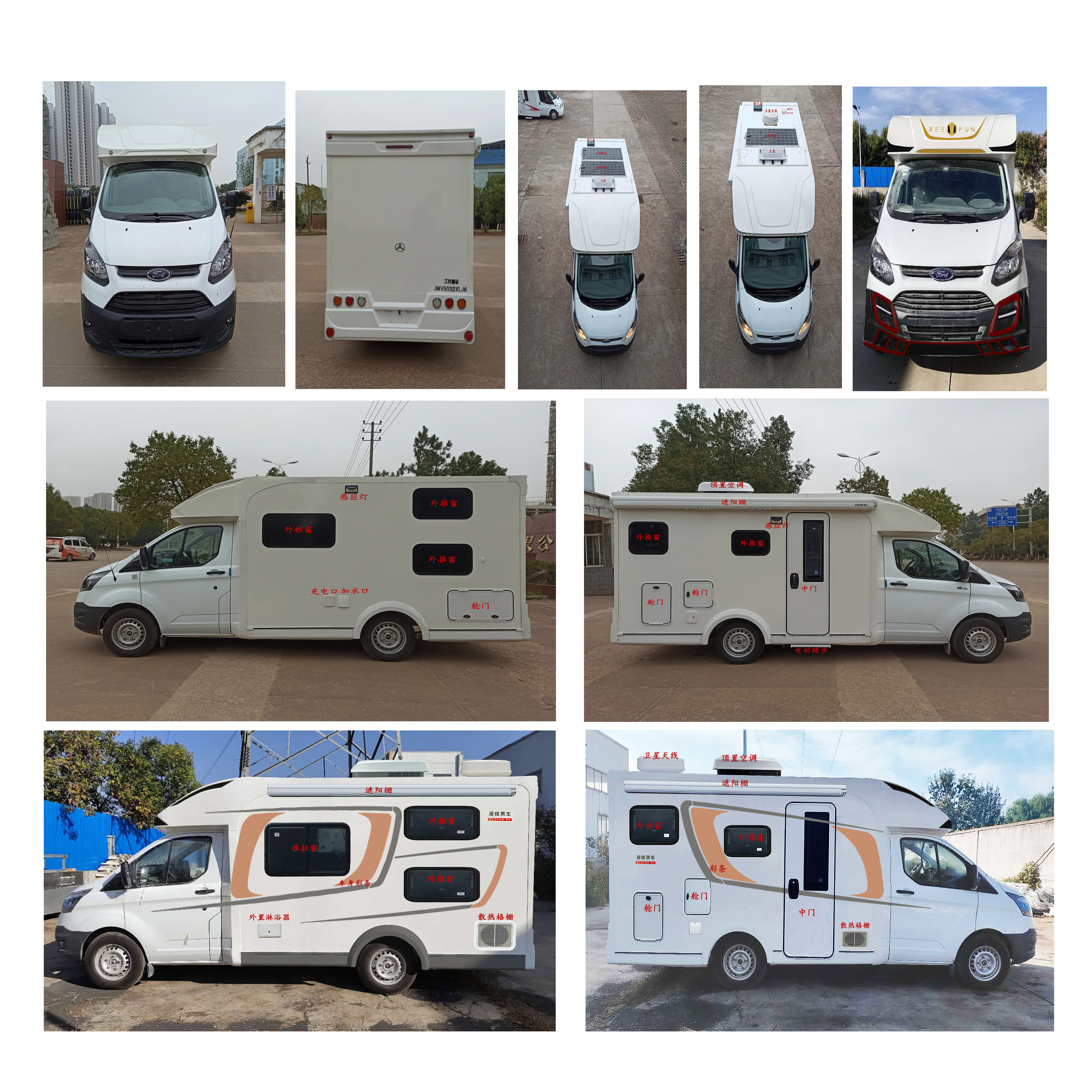 晶马牌江铃福特国六汽油版B型旅居车在外观时尚霸气造型圆润流畅,可有效降低风阻系数,整车外形尺寸为5995×2145,2205,2265×2520,2550,2600,2620,2780(mm),房厢采用玻璃钢复合车身结构及阻燃保温材料,做工精细;房厢内部配置齐全,床,洗手间,厨房,冰箱,,储物仓,暖气设备,灭火器等等。