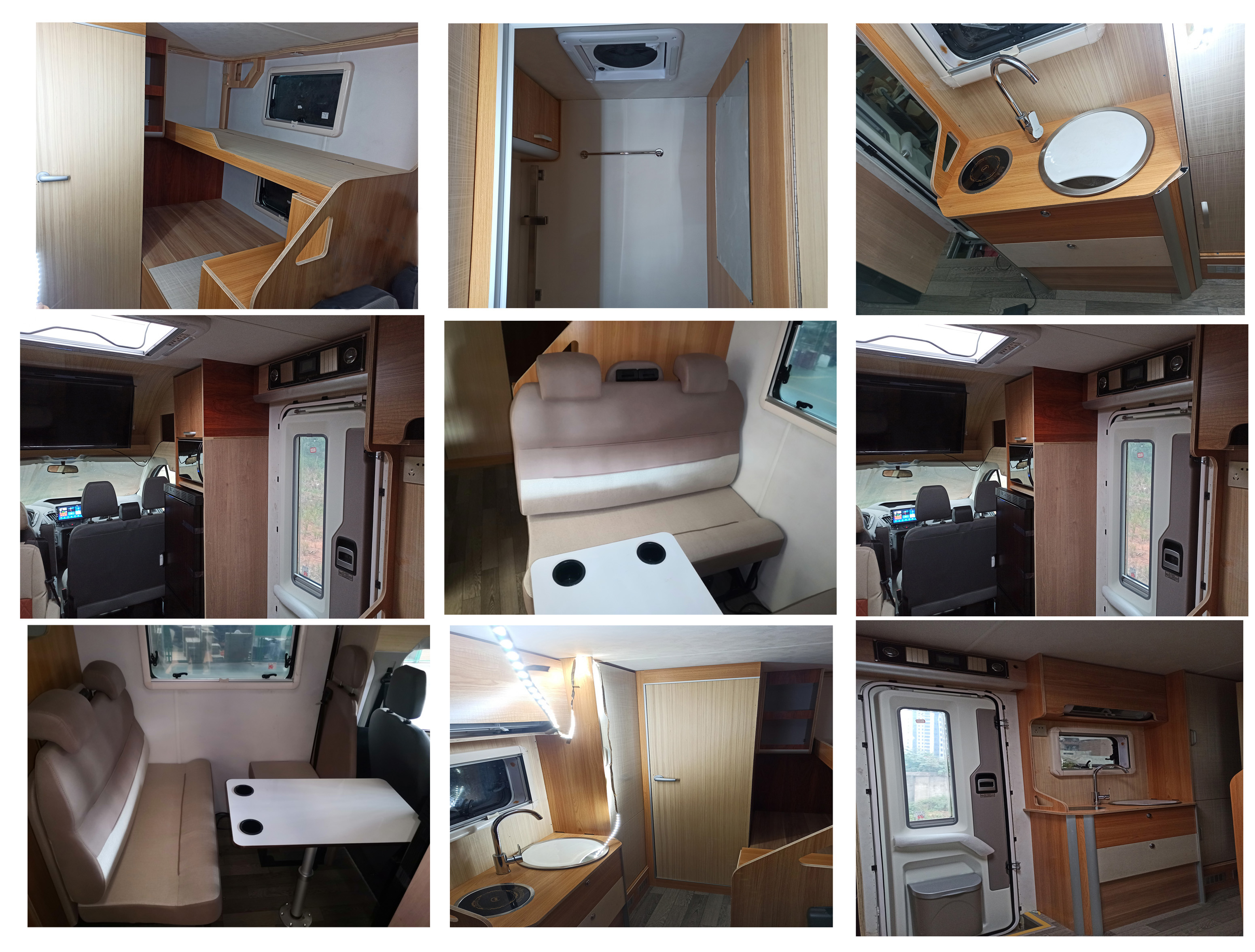 专用装置:配备卧具、餐桌、空调、液晶电视、卫生间旅居生活设施和娱乐设施。车身可选装遮阳篷、中门、外推窗、推拉窗、踏步、行李舱门、外置淋浴器、散热格栅、外接电源充电插座、注水口、车身彩条。车顶可选装全区域卫星天线、顶置空调、蘑菇头换气扇、天窗、双向换气扇、太阳能板。车身两侧可选装封闭部分窗户、舱门,可随底盘选装不同形式的前脸。顶部不选装设备时高度为2520mm,选装太阳能板时高度为2550mm,选装双向换气扇时高度为2600mm,选装蘑菇换气扇、天窗时高度为2620mm,选装全区域卫星天线、顶置空调时高度为2780mm;车身右侧不选装遮阳棚车宽2145mm,选装单侧遮阳棚车宽2205mm,选装两侧遮阳棚车宽2265mm。车身尾部可选装推拉窗、外推窗;前/后悬为1014/1681mm。ABS系统控制器型号:EV5051,生产企业:博世汽车部件(苏州)有限公司;发动机最大净功率为147KW;选装直接供电式ETC车载装置。 |