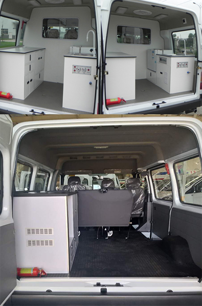 随底盘选装尾门踏板长4944mm,对应后悬1083mm;选装轮罩盖,车顶选装宣传广播扬声器,换气扇,场地照明灯,空调,后侧窗及尾门窗可部分或全部选装盲窗,车身两侧选装玻璃上掀窗或盲窗上掀窗。选装车顶宣传广播扬声器,换气扇或场地照明灯高2340mm,选装车顶空调高2540mm。配备办公桌,绕线盘,蓄电池等专用装置。ABS系统控制器型号:APG3550500G;ABS系统控制器生产企业:浙江亚太机电股份有限公司。发动机最大净功率83KW。 |