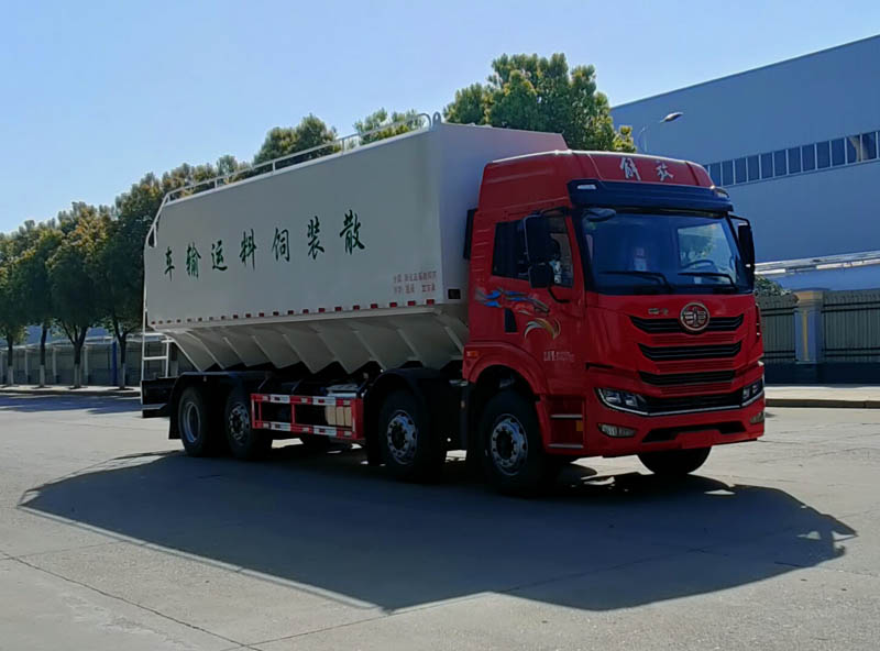 散装饲料运输车是畜牧场和饲料生产厂专用的一种车辆,它承担着饲料运输的重任。同时罐体容积大,可以分作不同的仓位,彼此隔开,可以同时运输不同的饲料,大大的节省了时间,提高了效率。聚尘王牌解放前四后六36.46方散装饲料运输车在机械化的时代,实现全自动化操作,无需人工上料、出料,操作简单方便。进口国产化液压件,容易维修保养。下面小编就带大家简单的了解一下这款车。聚尘王牌解放前四后六36.46方散装饲料运输车选用中国第一汽车集团有限公司生产的CA1310P1K2L7T10BE6A80平头柴油载货汽车底盘,搭配中国第一汽车集团有限公司 中国第一汽车集团有限公司 中国第一汽车集团有限公司生产的CA6DLD-29E6 CA6DK1-32E6 CA6DK1-28E6发动机,底盘稳配置全给车辆行驶提供强有力的保障,宽大豪华驾驶室,准乘人数为2,3人,全包内饰,可调节座椅,驾乘体验舒适。