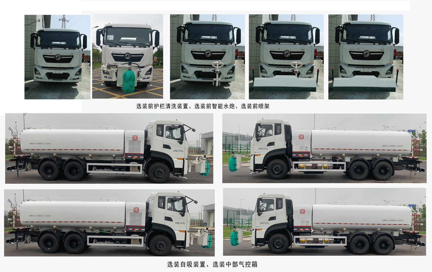 1.该产品是以清洗路面为主的移动环卫车辆,该车装有水罐、水路系统、清洗工作装置、后作业平台、控制系统用于清洗作业;2.该车轴距仅选4350+1350mm,罐体有效容积:13.02立方米,罐体外形尺寸(长×长轴×短轴)(mm):5500×2360×1420;3.该车有两种工作装置,配置A:装前喷架,前伸950mm,对应车长10720mm,配置B:装护栏清洗装置,前伸1250mm,对应车长11020mm;配置A时可选装前智能水炮、自吸装置,配置B可选装自吸装置,以上选装对整车重量和尺寸均可忽略不计;4.左右侧防护装置材质为铝合金,截面尺寸为100×30mm,通过连杆用螺栓安装在底盘大梁上,连杆材质为Q235B;后防护材质为Q355B,厚5mm,截面尺寸为160×60mm,下边缘离地高为495mm,通过螺栓安装在底盘大梁上.5.ABS型号/生产厂家:ABS-E 4S/4M、3631010-C2000/威伯科汽车控制系统(中国)有限公司,东科克诺尔商用车制动系统(十堰)有限公司.6.发动机最大净功率依次为:245Kw(YCK11340N-60),217Kw(YCK08300N-60),202Kw(YCK08280N-60);6.该车安装具有卫星定位的行驶记录仪,随底盘选装驾驶室. |