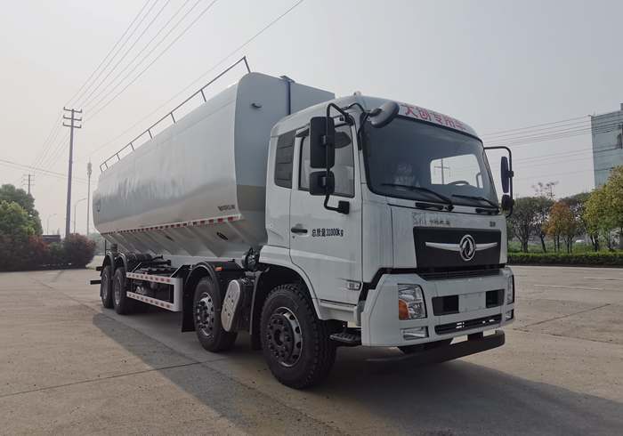 散装饲料运输车主要是从饲料厂向畜牧场、养禽场及饲料加工用户运输散装饲料成品或饲料生产原粮,不仅安全可靠,同时可以都带来非常高的经济回报,所以被广泛的应用于各大中小型养殖企业饲料的运输,下面小编就介绍一下散装饲料运输车中的一种——英创斐得牌东风畅行前四后八33.8方散装饲料运输车。