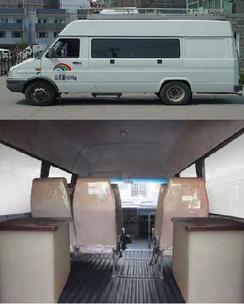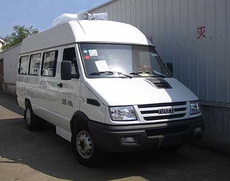 装载有服务柜/台及电源系统、办公系统等服务设施.选装侧后部部分盲窗,上掀门,上掀窗,行李箱门,换气扇,工作平台,喇叭,照明灯具,LED屏,后爬梯,顶置空调,天线.整车高度2670mm.选装低顶高度为2570mm.选装顶置空调,天线高度为3030mm,选装排风扇,各种喇叭及照明灯具高度为2870mm,选装监视器,工作平台高度为2970mm.选装后爬梯.车顶不带选装件车高2670mm.整车整备质量3450kg,选装顶置空调行李架,天线等整备质量3600kg,选装车内的发电机组,设备机柜等专用装置时整备质量3825kg.ABS系统控制器型号:BOSCH ABS8, ABS系统控制器生产企业:博世汽车部件(苏州)有限公司.选装后行李门,选装后上车踏板.发动机最大净功率93KW.随底盘选装一种前围,选装一种高后开门 |